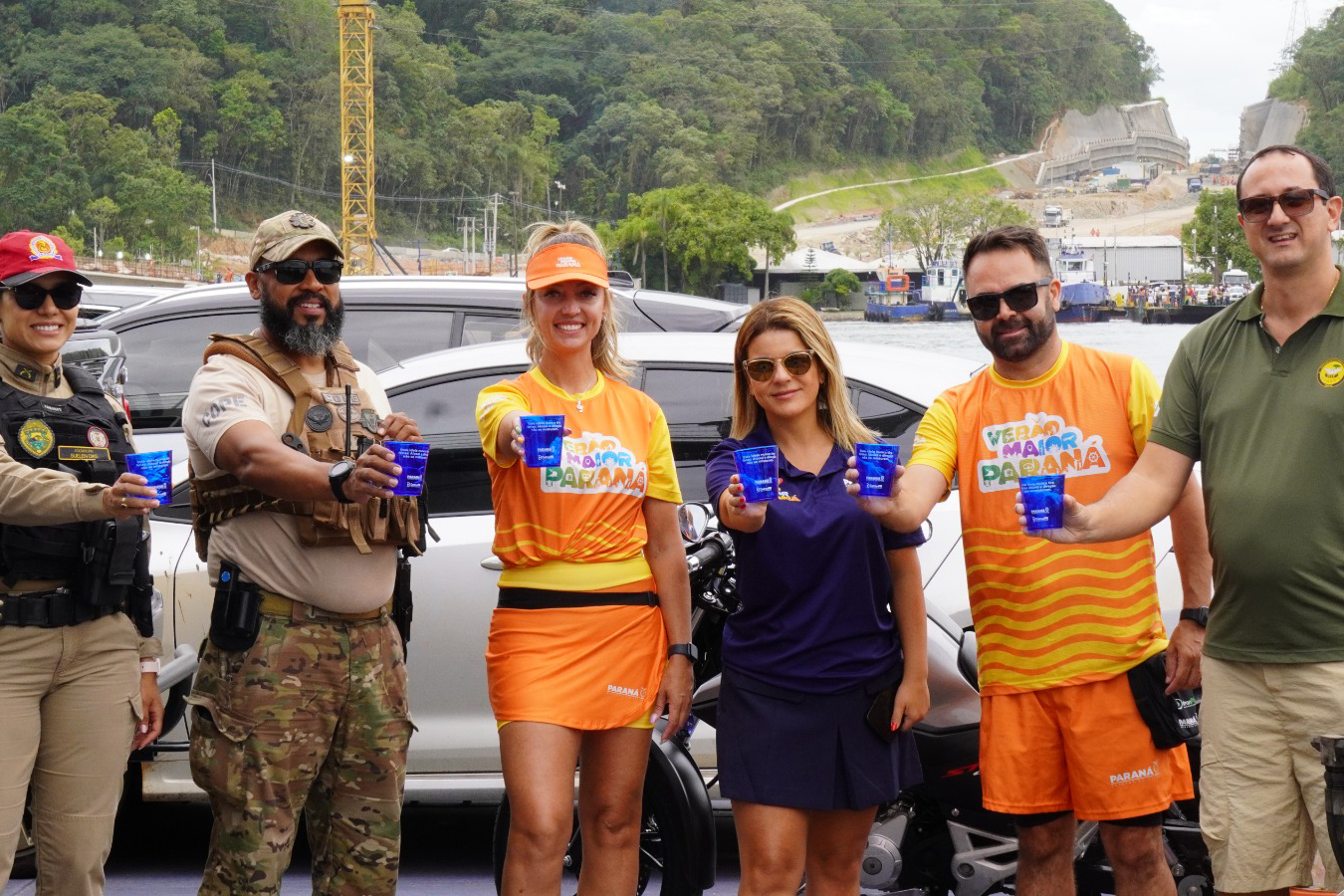 INTEGRAÇÃO – As ações do Detran-PR no Verão Maior contam ainda com parcerias estratégicas com as forças policiais. Um dos destaques é a blitz educativa realizada em conjunto com a Polícia Rodoviária Estadual (PRE) e a Polícia Civil (PC) na balsa, que faz a travessia entre Guaratuba e Matinhos. Considerando a média de veículos de passeio embarcados, além de ônibus, motocicletas, pedestres e funcionários da Internacional Marítima, estima-se que 720 pessoas tenham sido impactadas pela ação.