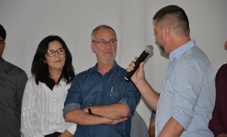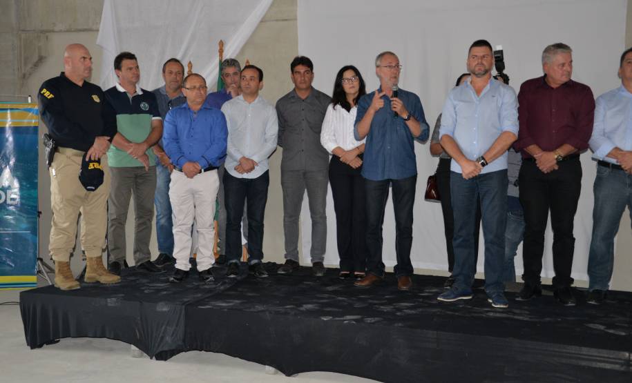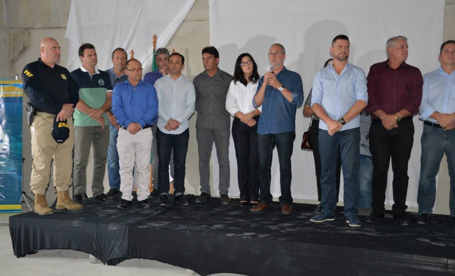 PRESENÇA: Participaram da solenidade o Prefeito de Fazendo Rio Grande, Marcio Wozsniak, o Vice Prefeito de Fazendo Rio Grande, Silvestre Savitzki, o Deputado Estadual, Gilson de Souza, o Presidente da Câmara Municipal do Município de Fazenda Rio Grande, Julinho Theodoro, o Diretor Geral do Detran, Marcos Traad e o Secretário Municipal de Defesa Social, Tony Silva.