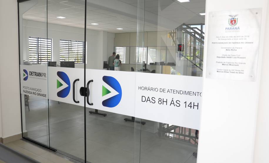 O Departamento de Transito do Paraná (Detran) inaugurou nesta quinta – feira (05), em Fazenda Rio Grande, na Região Metropolitana de Curitiba, mais um posto de atendimento avançado. A nova unidade fica na Avenida Paraná, 1408, no bairro Pinheiros. Em parceria com a prefeitura o posto, que antes só oferecia serviços na área de veículos passa a contar também com toda a parte de habilitação.
