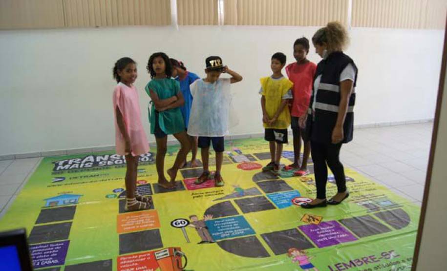 Durante a visita guiada, os alunos participam de diversas brincadeiras. Entre as técnicas para chamar a atenção está a entrega de um material didático, o bloco de mini multas, que permite aos alunos observar as infrações de trânsito cometidas por familiares e amigos e exigir sanções como balas e chocolates.