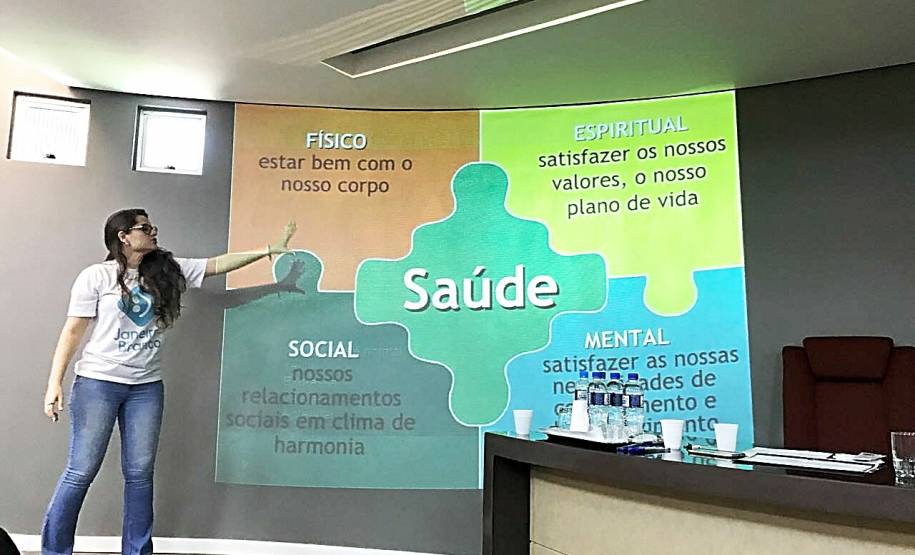 Durante a palestra foi realizada também uma técnica de dinâmica de grupo, com a proposta de trabalhar reflexões a respeito das emoções e da saúde emocional, bem como medidas a serem tomadas pelos participantes, para que melhorem sua saúde emocional durante o ano de 2018.