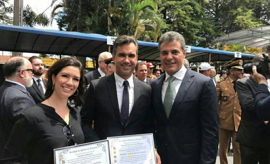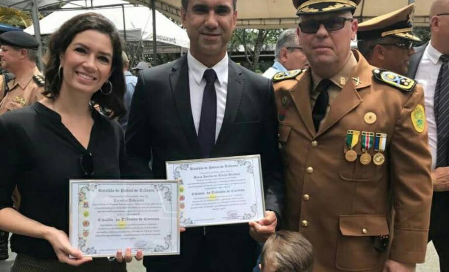Na quinta-feira (01) o diretor de Tecnologia e Desenvolvimento do Departamento de Trânsito do Paraná (Detran), Marco Aurélio de Araújo e a chefe de Divisão de Programas Educativos para o Trânsito, Caroline Andreatta, receberam do Batalhão de Polícia de Trânsito do Paraná, na solenidade do 66º aniversário do BPTran, a menção honrosa do título de “Cidadão do Trânsito do Paraná”.